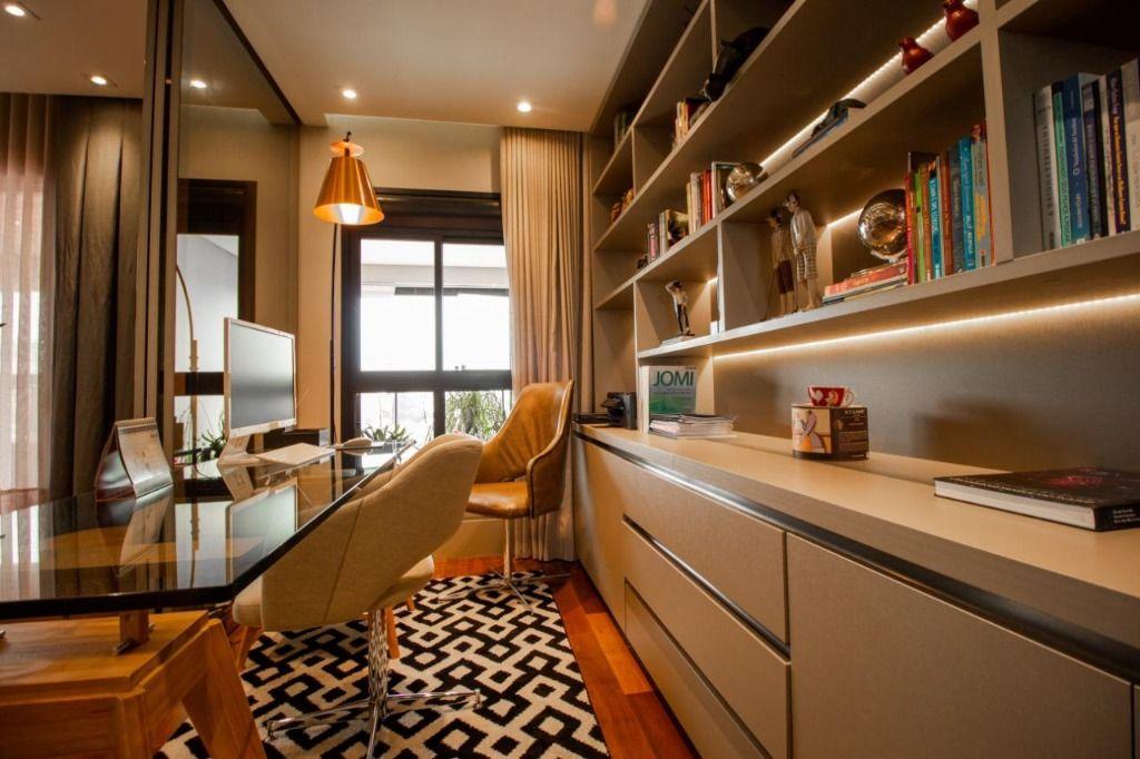 Totalmente mobiliado com peças de design, eletrodomésticos de alta qualidade e marcenaria sob medida.
