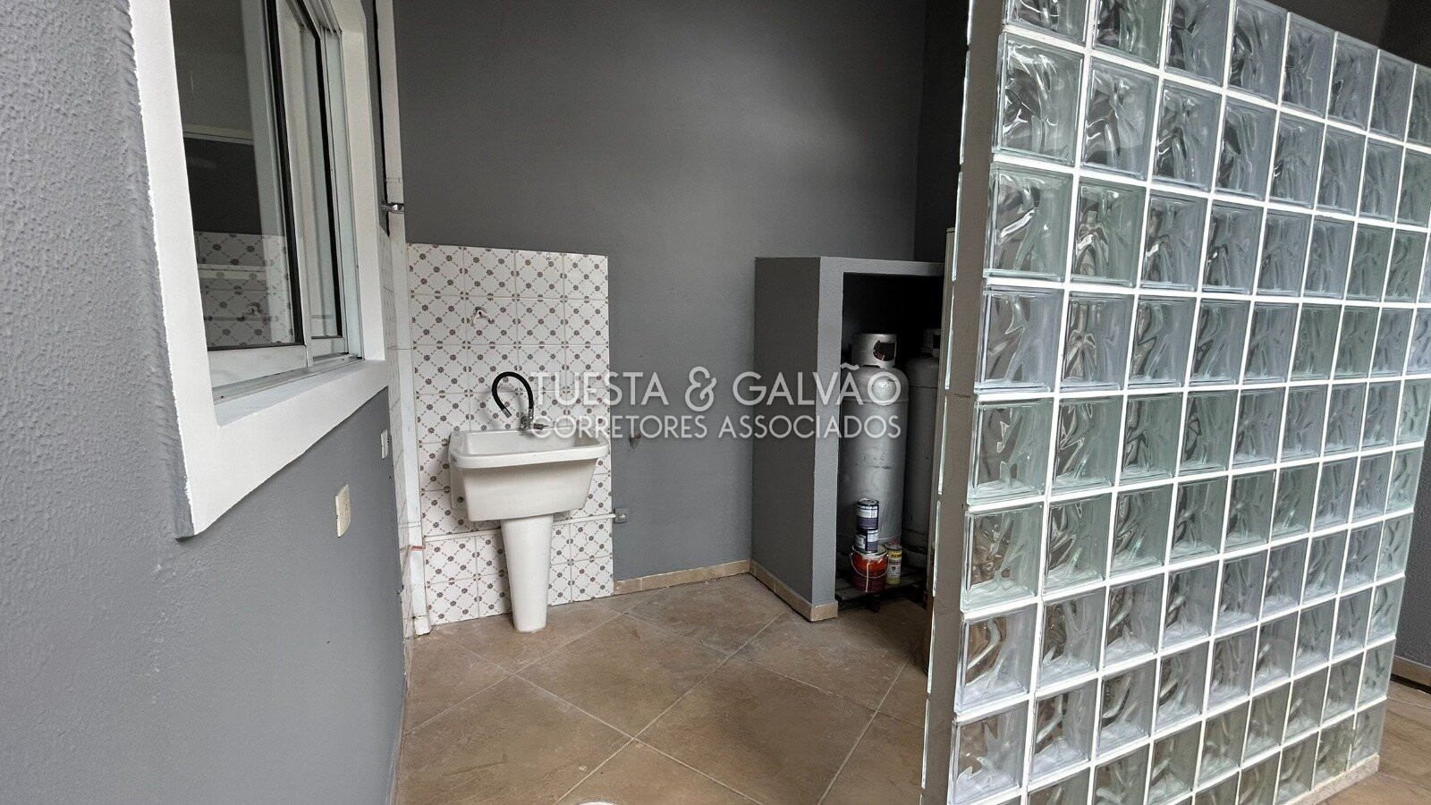 * Lavanderia separada, com tanque e dois botijões tipo cilindro