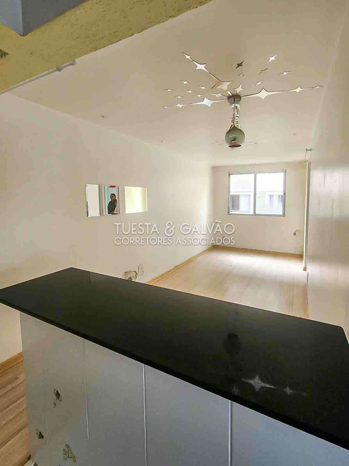 2 quartos, 1 banheiro, sala para 2 ambientes. integrada com a cozinha.