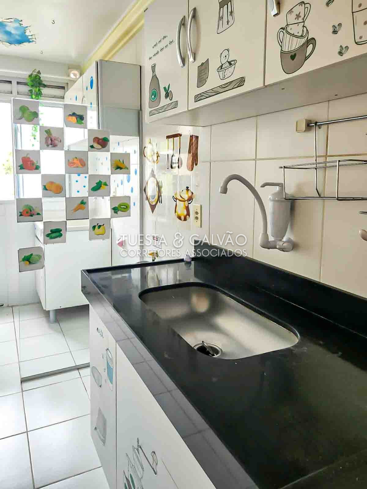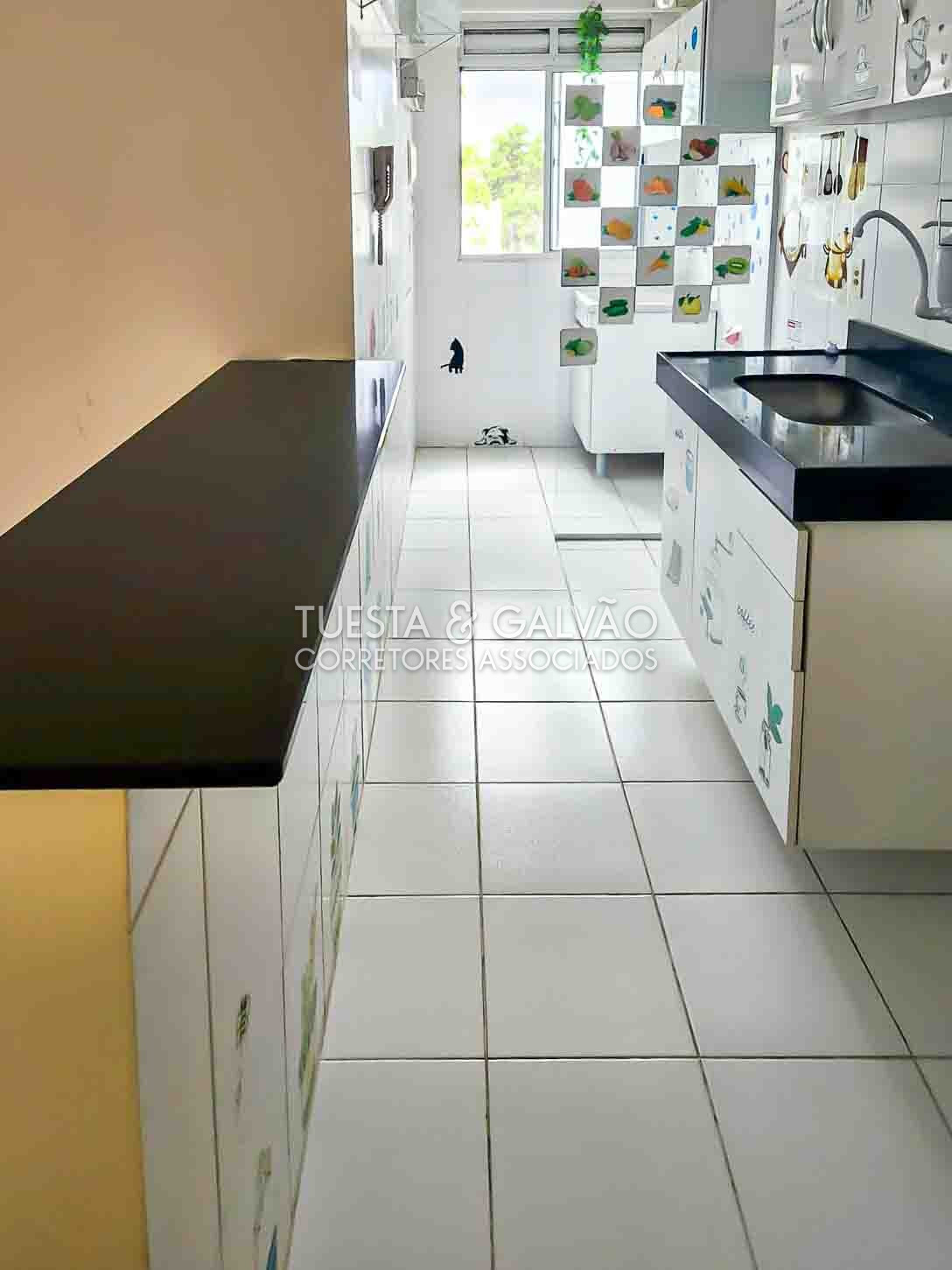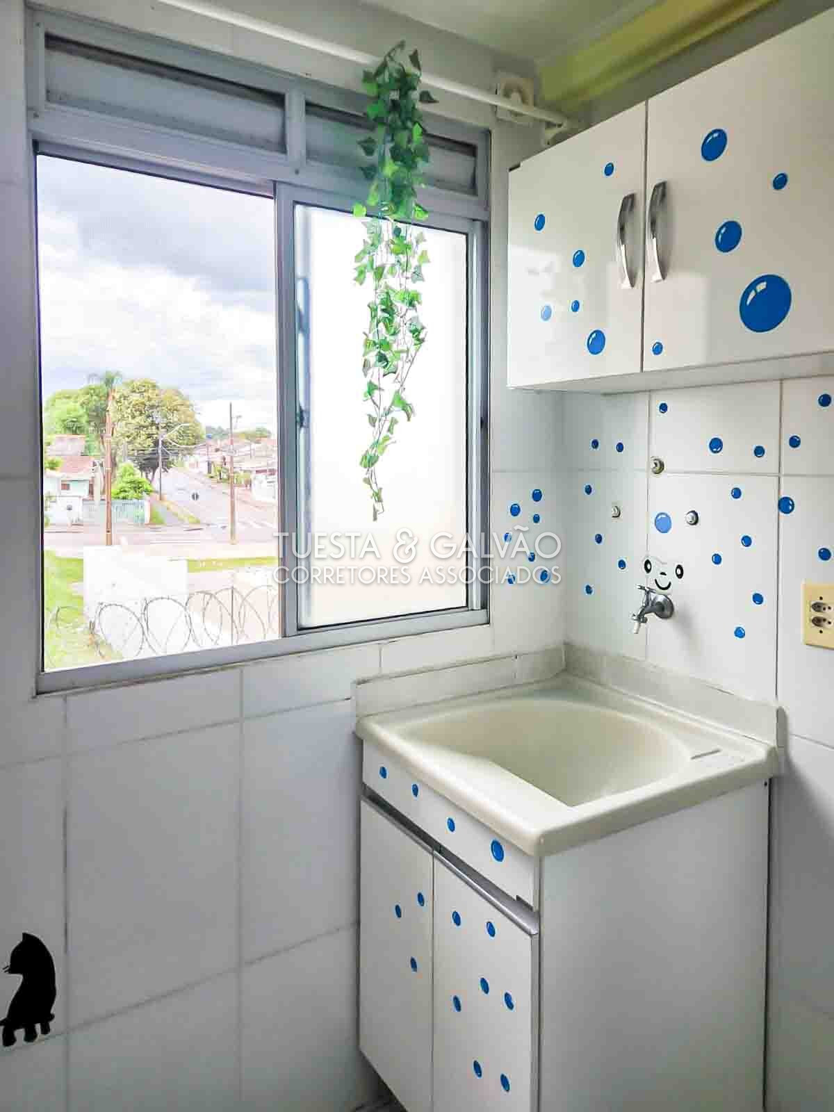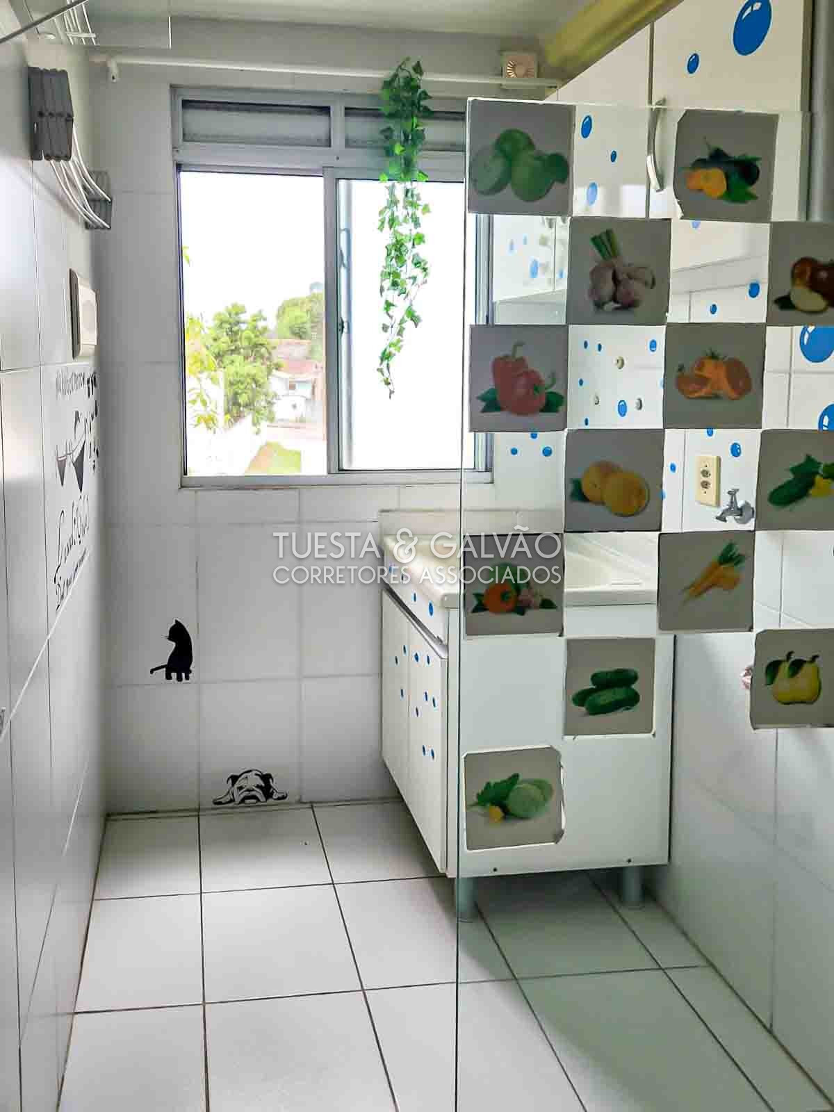 Lavanderia separada por divisória em vidro. Armários de qualidade na cozinha e no banheiro.