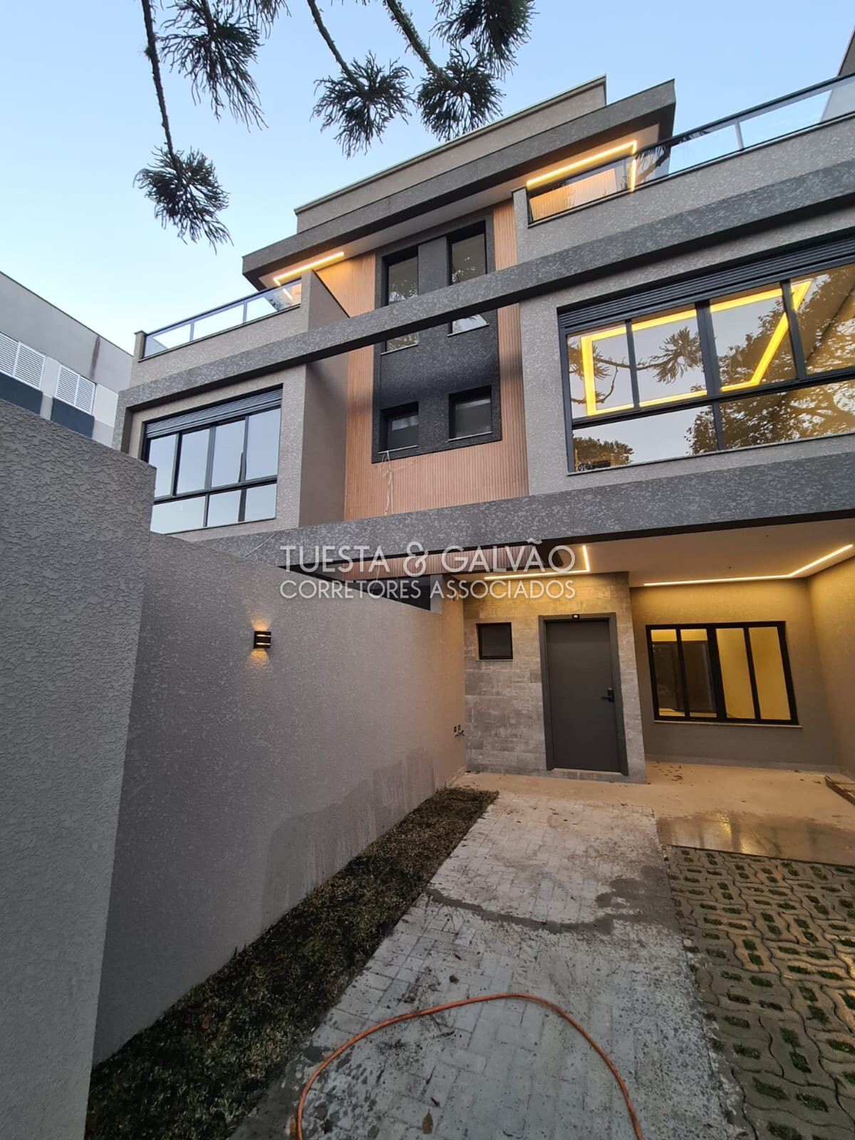 Imóvel novo, Sobrado com alto padrão de acabamento com sala para dois ambientes e cozinha em conceito aberto, área de serviço separada da cozinha, vaga para dois carros, churrasqueira, no segundo piso temos três suites, sendo a suite Master com espaço para closet e cuba dupla, com sacada, todos com persianas automatizadas com controle remoto, no terceiro piso temos um lindo terraço aberto, mais uma sala que pode ser um quarto, um escritório ou uma sala intima, e outro banheiro completo com ducha, temos na área externa, instalação em espera para Jacuzzi, o imóvel conta com acabamentos de alto padrão, bom gosto em detalhes na escolha dos padrões e cores, o bairro Água Verde conta com uma infraestrutura completa, bares, restaurantes, panificadoras, redes de farmácia, escolas, clubs, academias, e varios centros médicos e hospitais.